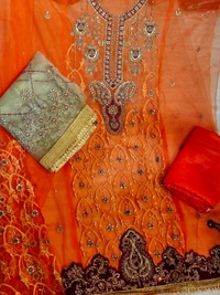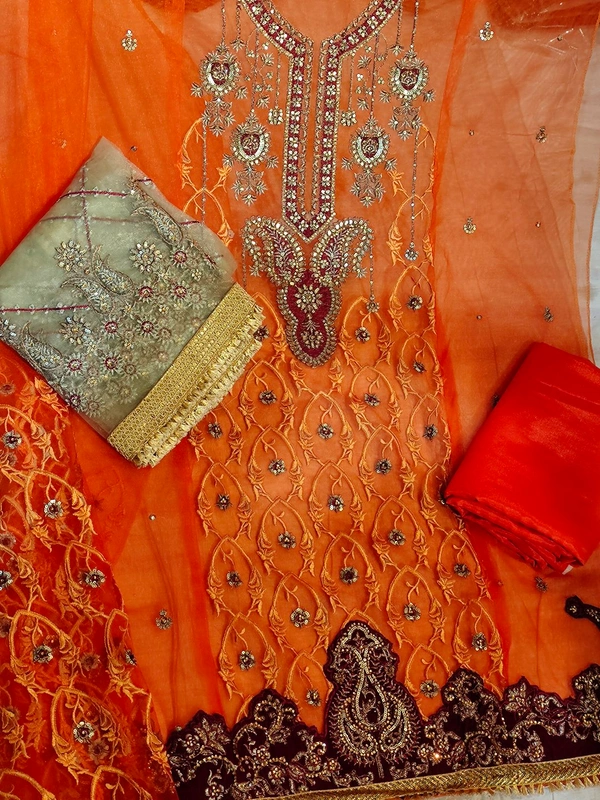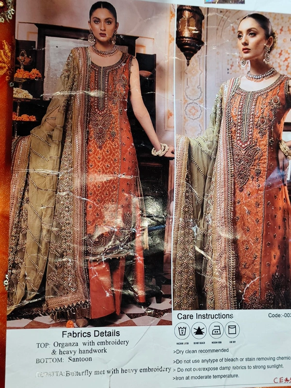 FABRIC DETAIL 💛💛💛. TOP : NET WITH HEAVY EMBROIDERY &HAND WORK. BOTTOM : SANTOON. DUPATTA : SOFT NET WITH HEAVY EMBROIDERY WORK ☘️☘️☘️☘️