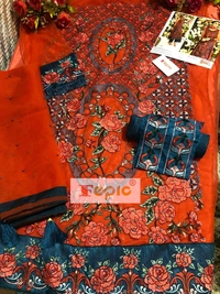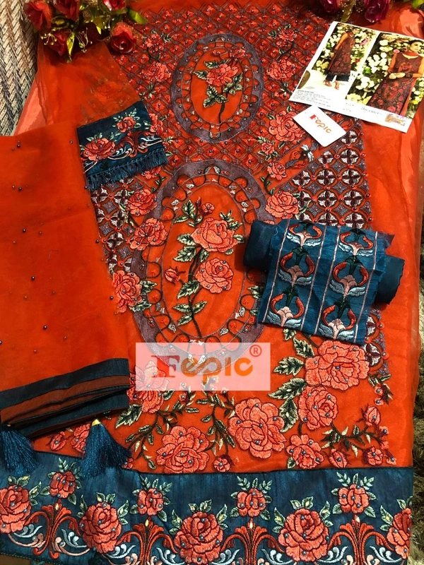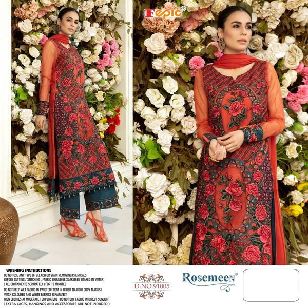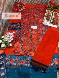 *BRAND NAME:-* FEPIC *CATALOUGE NAME:-* ROSEMEEN *D NO:- 91005* *Top:-* NET EMBROIDERED WITH HAND WORK *Dupatta:-* HEAVY NET EMBROIDERY *Bottom:-* SANTOON *INNER:-* SANTOON