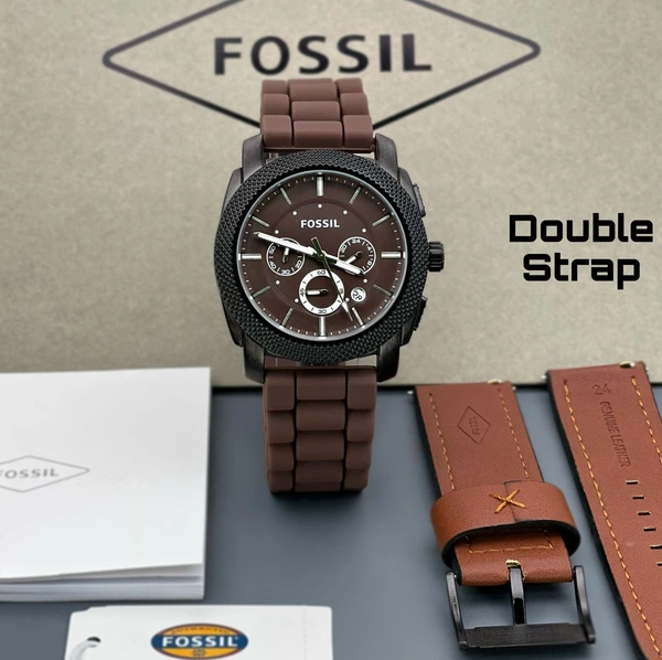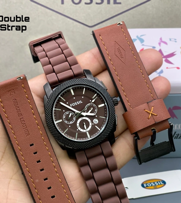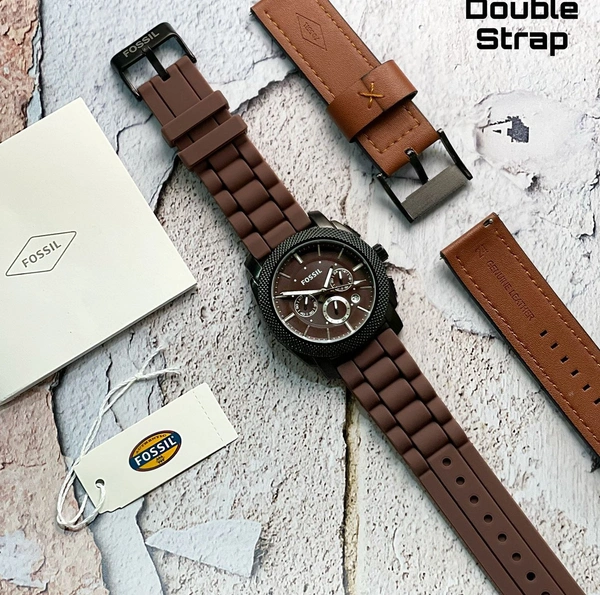 *Hot selling model Fossil Double Strap*🔥 *Fossil's "Machine" Collection, this watch has a timeless design which perfectly accompanies every man's style. Inspired by aeronautical* ⭐️ ⭐️⭐️ Brand-Fossil Model-FS Quality-7a Gender-Men’s Band-Brown Dial-Brown Movement-Quartz Case Diameter-42mm Case Thickness-12m Glass-Mineral All working Chronograph *Double strap leather&Rubber* *(High Quality)* *Free Fossil Printed box*🛍