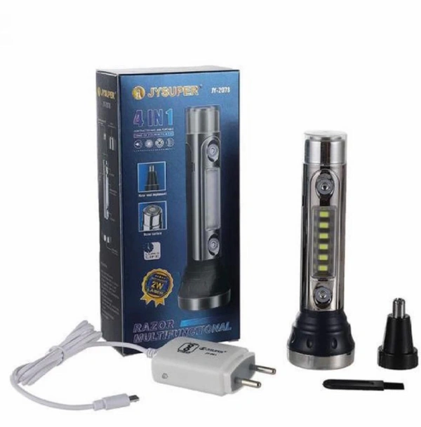 JY-2078 rechargeable 4 in 1 Led torch with Shaver, Nose trimmer and COB light.