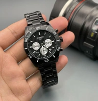 *Upgrade your accessory collection with this men's analog watch from Tissot. Functional on a quartz chronograph movement, the round dial is secured by a sapphire glass. The strap is crafted with care using stainless steel that gives a good finish.*