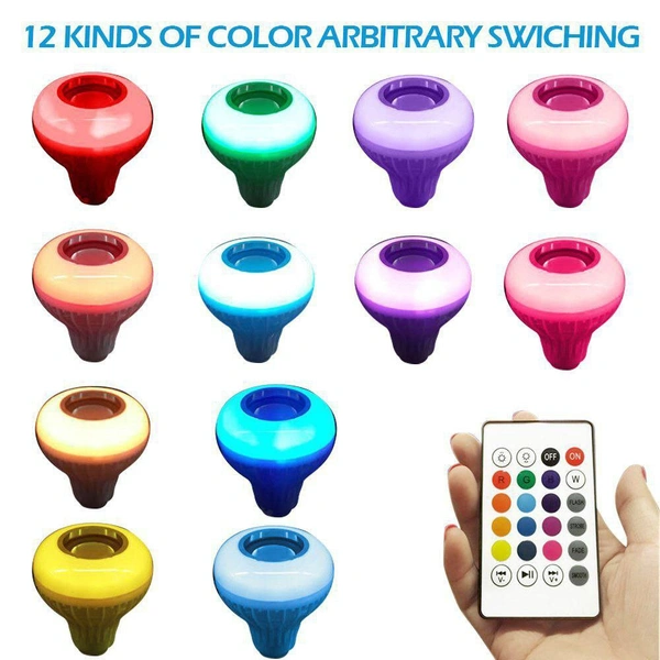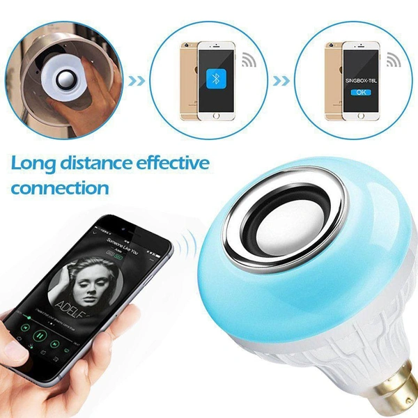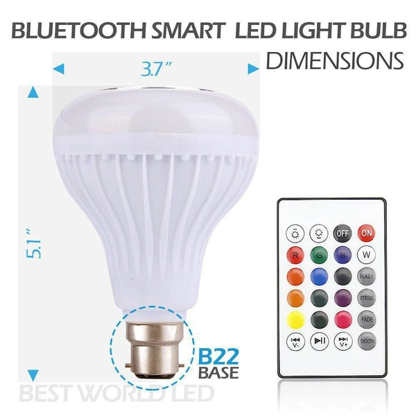 Led Colorful Bulb Bluetooth speaker with White + RGB Led light with remote control and B22 base for Home, bedroom, Living room, Office, Party decoration etc.