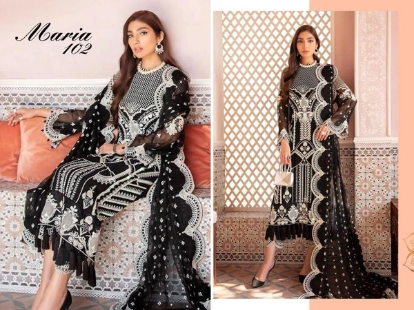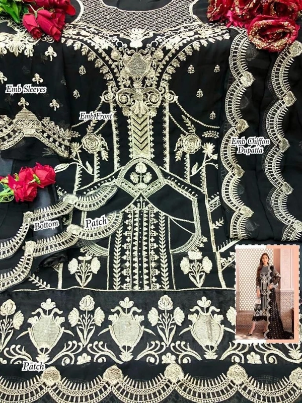 *MOST HIT DESIGN.* Name :- *MARIYA 102* 🔻Description🔻 🔹Top: Fox georgett with heavy embroidery 🔹Bottom : Santoon with embroidery petch 🔹Dupp: Georgett chiffon With Heavy Embroidery DESIGN : 1