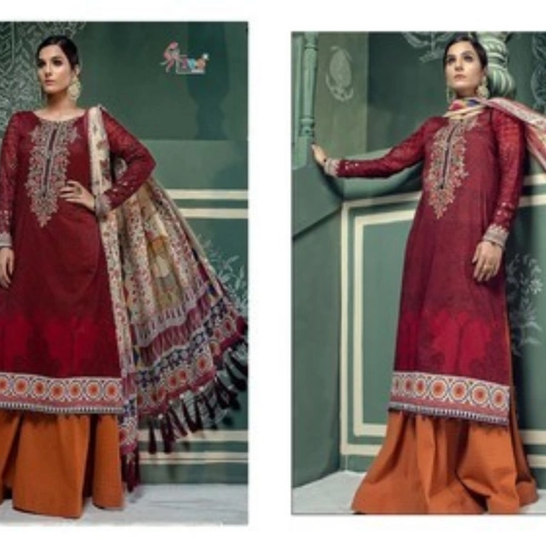 Lawn cotton designer pakistani suit with designer net sleeves, patches, plain Bottom, Duppatta printed chiffon,.......Top - 2.25 mtr. Bottom - 3mtr. Duppatta 2.5 mtr.