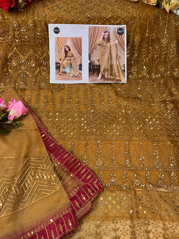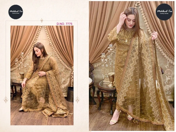 _*BRAND NAME*_:- MAHBOOB _*CATALOUGE NAME*_:-kalmkar vol. 1 _*D NO*_:- 7775 _*Top*_:- NET EMBROIDERED WITH HEAVY HANDWORK _*Dupatta*_:-NET SEQUIN PEARL WORK with lace extra _*Bottom*_:- santton _*INNER*_:-SANTOON ☎️: 9554592200 *READY TO SHIP*