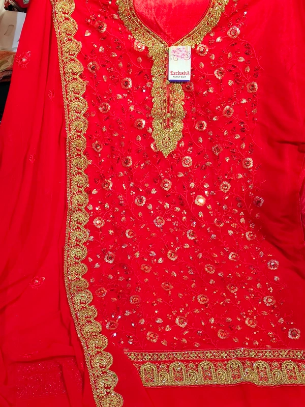 🌹🌹 DESIGNER BRIDAL SUIT🌹🌹. TOP : GEORGETTE HEAVY EMBROIDERY WORK. BOTTOM : SANTOON. DUPATTA : GEORGETTE WITH HEAVY WORK