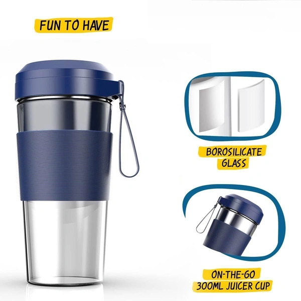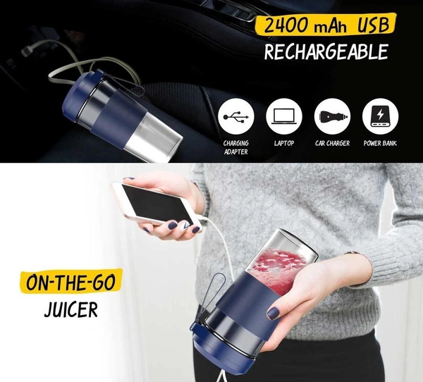 Portable juicing cup (KLP-08) 450 ml Rechargable juicer bottle with 4 blades, easy to carry for shakes, juices etc.