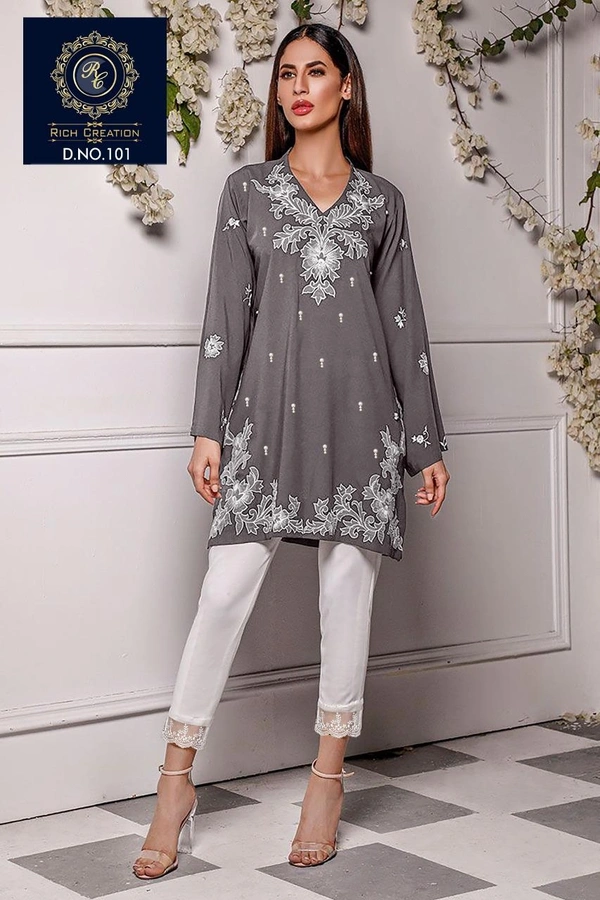 *Designer Luxury Tunic* with beautiful classy Embroidery Work With Pearls With Classy Slive paired with Cigarette pant With Beautiful Lace Work