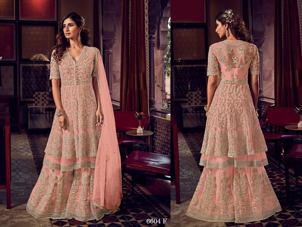. *SWAGET 6604 Designer Lanhga* Fabrics Details :- *Top*:- Havy Net With Coding Work + Stone Sleeves :- Net With Emb. Work + Stone *(Back side full work)* Inner :- silk (attached) Length :- Max Up to 42” Size :- Max Up to 52” *Plazzo* :- Net With Full Havy Cod. Work With Sik inar (stich) Length :- Max Up to 46” Size :- Max Up to 44" *Dupatta* :- Net + Stone With Four Side Less boder Type :- Semi Stiched (Materiel) Weight :- 1.200kg Wash :- First Time Dry Clean 💯% Premium Quality Available