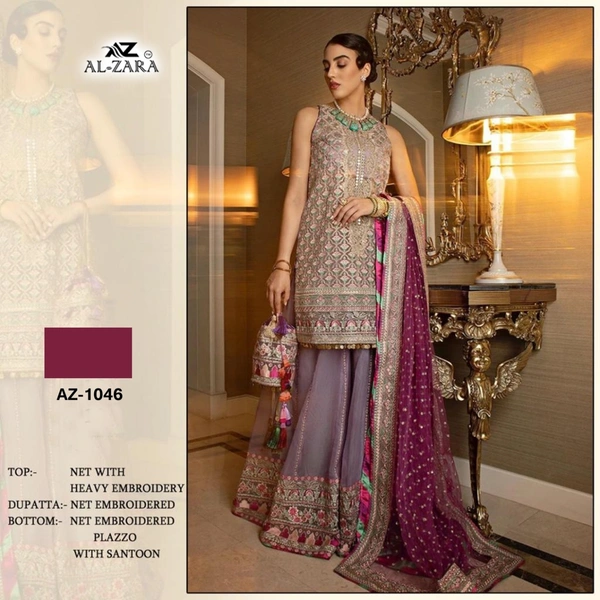 👖BOTTOM:- NET EMBROIDERY PLAZO WITH SANTOON STITCH(FREE SIZE)
