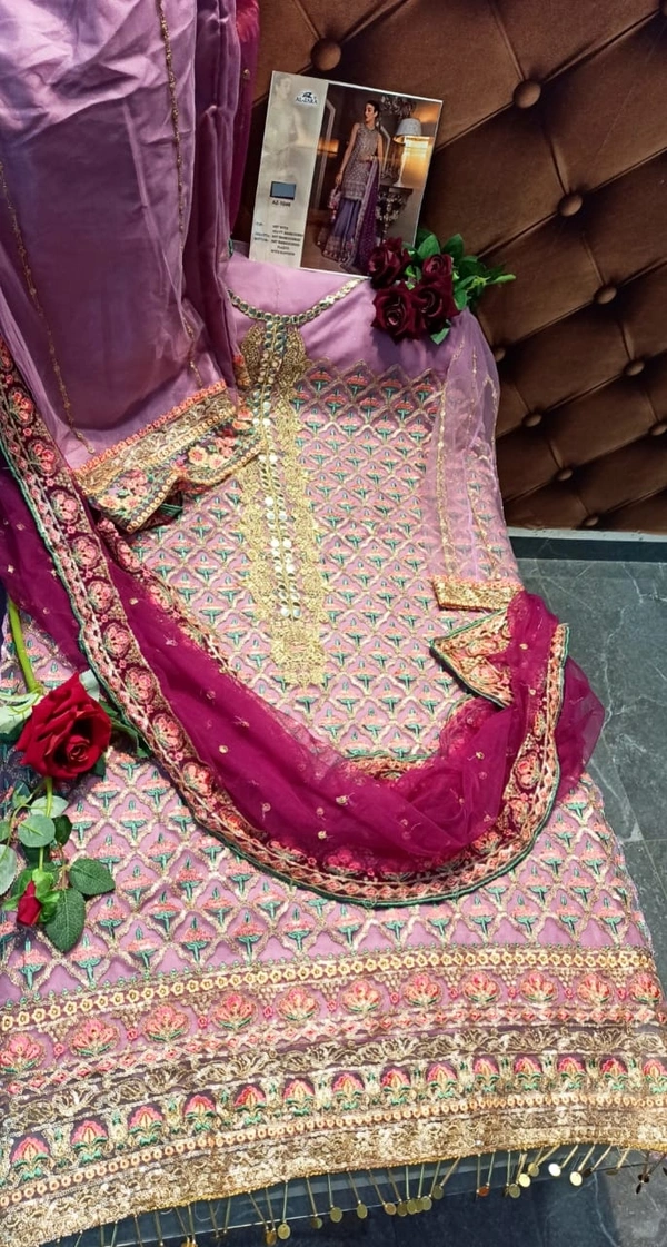 👗TOP:- NET WITH HEAVY EMBROIDERY AND SEQUENCE WORK